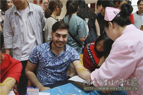 得知此次献血活动的消息,19岁的阿塞拜疆籍留学生毕目达(MURAD BILAOV)主动找到老师要求报名参加。在他就读的国际教育学院老师和同学们陪伴下,他完成了平生的第一次献血。问他是什么感受,他用刚刚学会的汉语说“很棒,我也可以帮助别人了”。这次献血活动不仅有效缓解了孝感市临床用血紧张局面,也充分体现了湖北职业技术学院大学生的责任担当意识。
