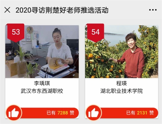 由湖北省教育厅支持,楚天都市报联合湖北省教育基金会、湖北电视教育频道共同主办的2020“寻访荆楚好老师”推选活动正火热进行中,经专家组初评,全省500名推荐者中有68名(组)候选年度“荆楚好老师”,我校就业指导中心副主任程瑛同志名列其中。