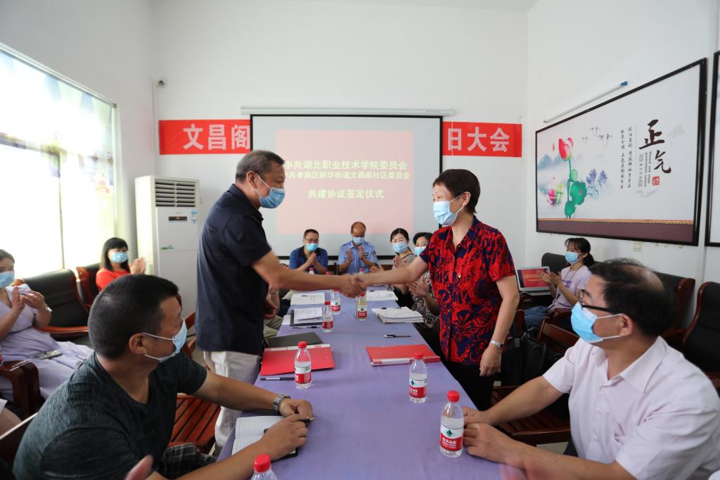 为全面贯彻落实党的十九届四中全会、习近平总书记考察湖北重要讲话精神,落实学校党员干部下沉社区常态化工作,密切党同人民群众的血肉联系,提升社区治理工作水平,努力达到党员受教育、基层组织增活力、居民群众得实惠、社区治理上水平的目标,学校结合实际,与文昌阁社区达成共建协议。