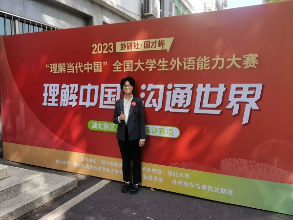在英语学习领域,她是展现出独特的毅力与天赋。她以534分的优异成绩通过英语四级考试,随后在众多英语竞赛中脱颖而出。在“外研社·国才杯”“理解当代中国”全国大学生外语能力大赛湖北职业技术学院选拔赛中,她一路过关斩将,在演讲、写作、短视频赛项均荣获一等奖;在省赛短视频赛项中斩获银奖;在全国职业院校英语口语赛项湖北省选拔赛中取得第三名;在全国大学生英语竞赛初赛与决赛中均荣获一等奖。这些亮眼的成绩,是郭若涵日复一日坚持学习、勇于挑战自我的有力见证。但她更珍视背后的成长:“这些标签不是终点,而是提醒我继续奔跑的里程碑。”