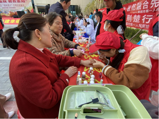 (本网讯 卢雅雪 冷玖玲)金秋送爽,丹桂飘香,在重阳佳节来临之际,教育与艺术学院、卫生技术学院、口腔医学院、护理学院的百余名师生,走进文昌阁社区开展志愿服务活动,以“情暖金秋,爱在重阳” 为主题,用文艺表演传递温情,用专业服务守护健康,为社区居民献上一份温馨的节日祝福。