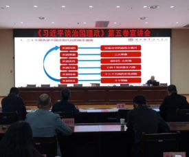 宣讲团成员王振江、刘婷、胡奖、彭雅琴围绕《习近平谈治国理政》第五卷的重大意义、核心要义和实践要求,进行了系统深入的阐释解读。他们结合孝感各地发展实际,运用生动案例和详实数据,引导广大党员干部深刻领会著作中蕴含的新理念、新思想、新战略,准确把握习近平新时代中国特色社会主义思想的精神实质和丰富内涵。