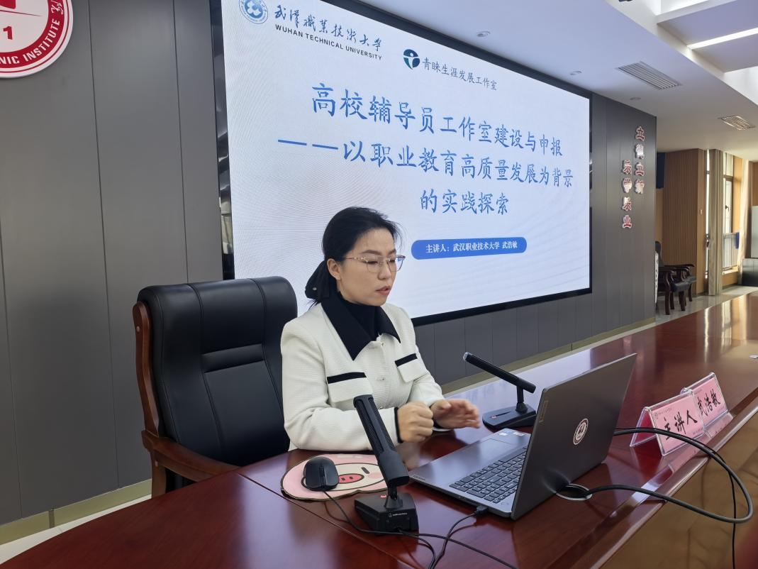 专题讲座中,武浩敏立足职教高质量发展需求,以实操为核心,系统解读辅导员工作室建设“精准定位-团队构建-机制保障-项目驱动-迭代升级”五步法实操细节,聚焦品牌创建“四有标准”、团队培养“三维三阶”模式及申报书撰写“黄金法则”等方面,提供政策转化、成果落地及新技术应用的实操方案,助力辅导员快速提升工作室从建设到申报的全流程实操能力。