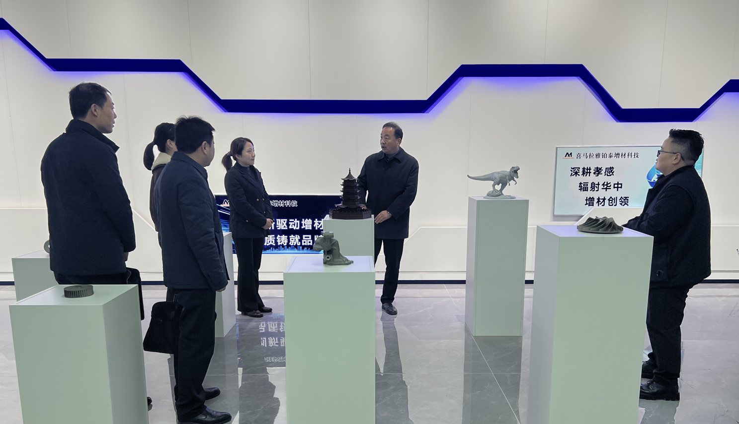 在湖北宇飞增材有限公司,郭国文一行参观了企业产品展厅和生产车间,实地了解企业的生产工艺流程和研发情况,听取了企业负责人关于公司发展历程、主营业务及核心技术介绍。在孝感喜马拉雅铂泰增材科技发展有限公司,郭国文一行参观了企业3D打印产品展示中心,了解企业的发展现状、产业布局及产教融合情况。