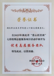 (本网讯 卢雅雪 冷玖玲)近日,我校葵花籽志愿服务队与爱心口腔志愿服务队凭借在爱心托管班中的突出表现,获评湖北省志愿者协会“优秀志愿服务团队”称号。