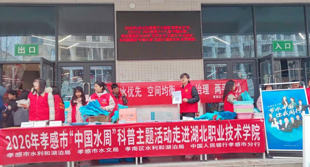 (本网讯 程国宝)2026年3月22日是第三十四届“世界水日”,3月22日至28日是第三十九届“中国水周”。为进一步增强全校师生节水护水意识,营造勤俭节约、绿色文明的校园氛围,3月20日,学校联合孝感市水利和湖泊局、孝感市水文局,围绕“珍爱生命之水共建节水校园”主题,开展了形式多样、内容丰富的节水宣传系列活动。