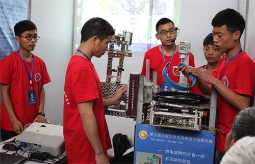 在刚刚结束的“石油四机杯”2016年湖北省大学生机械创新设计大赛暨第七届全国大学生机械创新设计大赛湖北分区预赛上,学校选派了机电工程学院两个代表队参加比赛,他们现场沉着冷静,表现突出,设计的作品创新点新颖、功能齐全,两个代表队双双夺得一等奖。