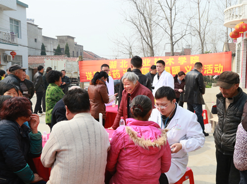 3月16日,由学校党委书记蔡诗红、副书记张勇带队,学校党政办公室、党委组织部、附属医院负责人及附属医院内科、皮肤科、检验科专家等10多人,赴“三万”活动驻点村——汉川市庙头镇陈谢村,开展送医送药惠民义诊活动。