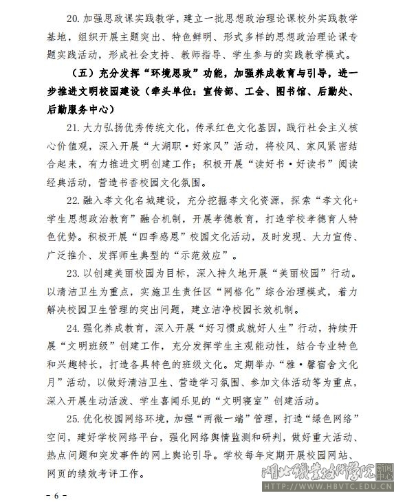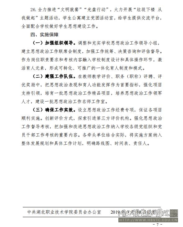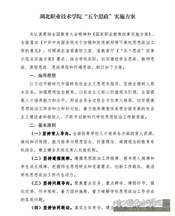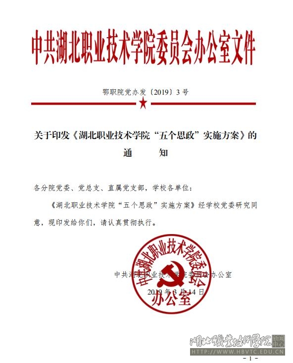 关于印发《湖北职业技术学院“五个思政”实施方案》的通知