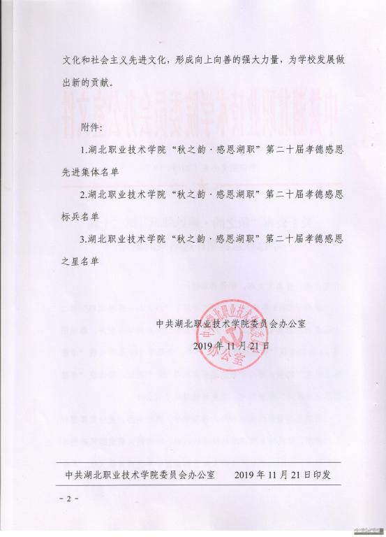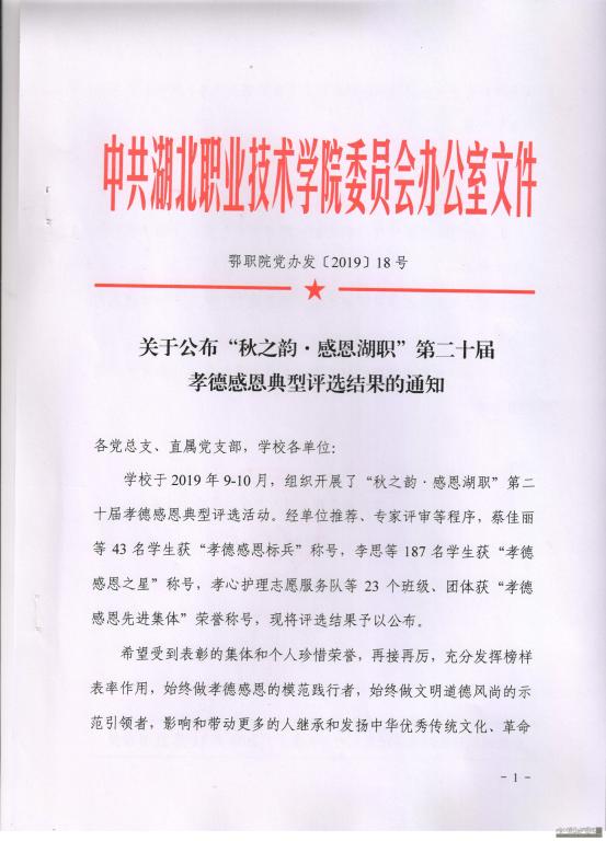 关于公布“秋之韵·感恩湖职”第二十届孝德感恩典型评选结果的通知