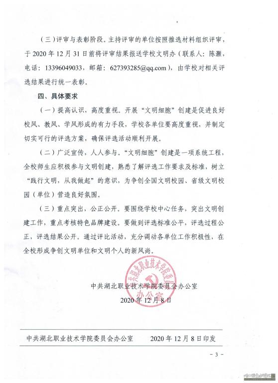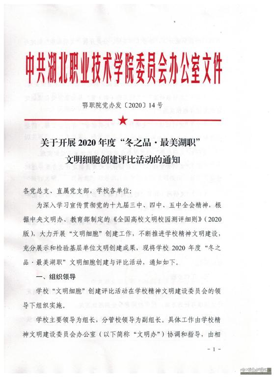 关于开展2020年度“冬之品·最美湖职” 文明细胞创建评比活动的通知