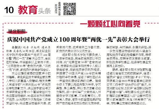 【孝感晚报】庆祝中国共产党成立100周年暨“两优一先”表彰大会举行