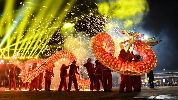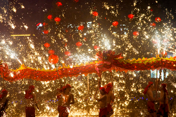挂彩灯,燃焰火