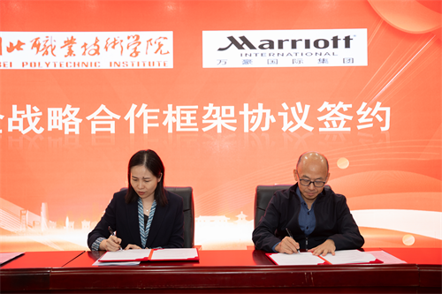 (本网讯 王丹 戴卓 马江浩 李蓓蕾)10 月17日,湖北职业技术学院与华强方特(孝感)文化科技有限公司、万豪国际集团校企战略合作协议签约暨“订单班”揭牌仪式在西区文博馆学术报告厅举行。武汉卓尔万豪酒店总经理高明、万豪国际集团校企合作华中区代表杨骏、华强方特(孝感)文化科技有限公司人力资源部部长万俊涛,我校党委委员、副校长白梦清等出席,教务处、对外合作交流处、财经与旅游学院负责人及订单班学生等共同见证校企携手、开启新程的重要时刻。