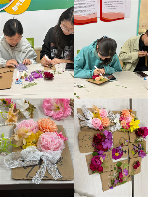 活动以垃圾分类知识问答开场,同学们踊跃抢答,在轻松互动中快速掌握了分类常识。随后,大家利用废旧硬纸板进行插花手工体验,在动手实践中感受“变废为宝”的乐趣,创作出属于自己的环保作品。趣味游戏“垃圾炸弹”环节中,同学们通过传递气球、完成环保任务,在欢声笑语中巩固了低碳知识,将活动气氛推向高潮。