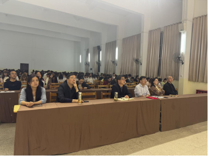 (本网讯 李璇)当创新创业的激情遇见传统艺术的底蕴,美育便有了时代的回响。4月26日晚,教育与艺术学院2026年“美育大讲堂”第2期在师范校区大礼堂举行。学院院长肖成林主持活动,艺术学博士、清华大学美术学院研修学者、青岛黄海学院戏剧影视美术设计专业带头人叶辉老师应邀作题为《创新思维带动竞赛——数字时代以设计的力量重塑传统艺术》的专题讲座,学院师生代表300余人到场聆听。
