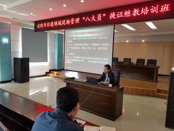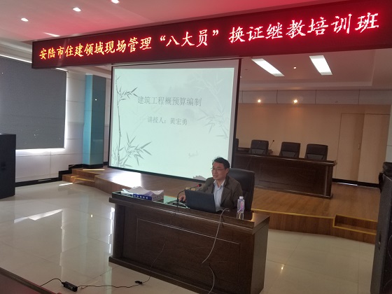 4月21日至23日,安陆市住建领域现场管理“八大员”换证继续教育培训班在安陆市自来水公司成功举办,以安陆市建筑企业为主的建筑业从业人员260余人参加了为期3天的培训。受孝感市建设职业技能岗位鉴定站的邀请,建筑技术学院专业教师王义剑、黄宏勇分别围绕绿色建筑、海绵城市建设、营改增后对工程造价计价工作的影响等内容,对参与培训的人员开展了三场专题讲座。