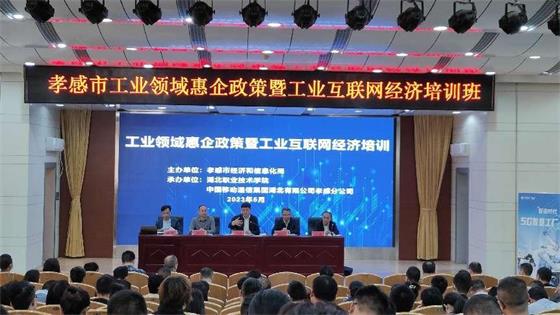 (本网讯 汪行光)5月9日,2023年孝感市工业领域惠企政策与工业互联网经济培训班在学校西区文博楼学术报告厅开班。培训班旨在加快推动制造业企业工业互联网升级,积极推进食品企业诚信体系建设,提升消费品企业开展网络营销的能力。培训班由孝感市经济和信息化局主办,湖北职业技术学院和中国移动通信集团湖北有限公司孝感分公司联合承办。孝感市经信局党组成员、副局长叶剑刚,市经信局党组成员、总经济师杨杰,我校党委委员、副校长袁胜华,我校财经与旅游学院院长徐斌华,中国移动通信集团湖北有限公司孝感分公司政企部经理王显清等出席。经信部门分管负责同志、业务负责人,来自孝感市各县市区的企业代表共计130余人参加了培训,开班仪式由孝感市经信局党组成员、副局长邱鹏主持。