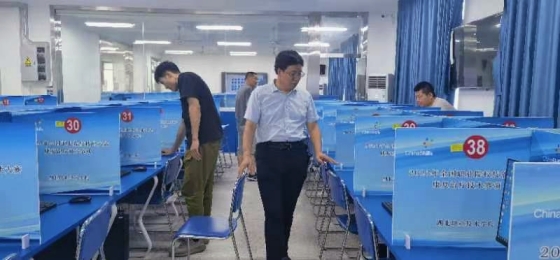 7月27日下午,专家组成员李教授、张教授、白教授一行不顾舟车劳顿,抵孝后第一时间前往比赛现场,检查、校准相关设施设备,指导备赛工作。